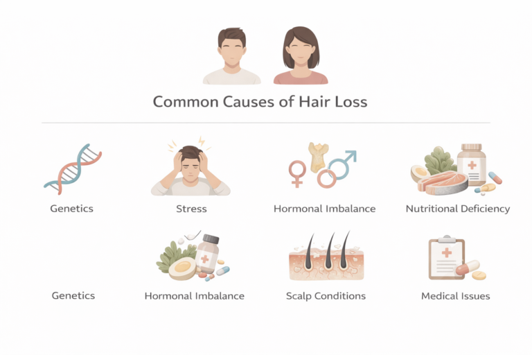 This guide explains the most common causes of hair loss, how they affect the hair growth cycle, and when professional evaluation becomes necessary.